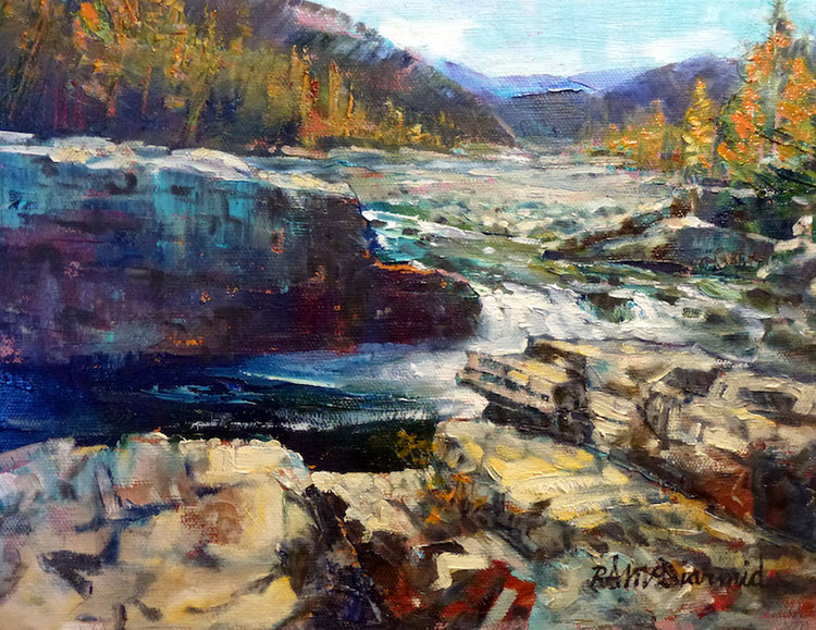 At The Falls $ 750 Framed Oil on Board 12″ W x 9″ H